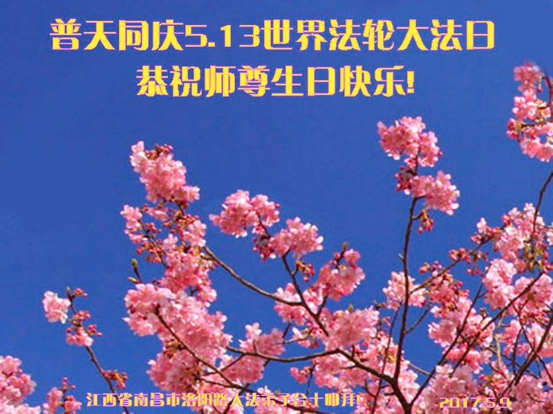 【明慧网二零一七年五月十二日】 江西南昌大法弟子全家恭祝师尊生日快乐!普天同庆5.13世界法轮大法日!