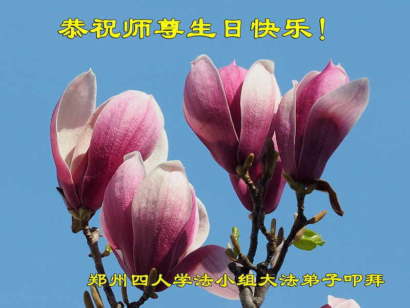 在这风风雨雨的二十多年中,师尊为弟子和众生承受了许多魔难。在师尊的慈悲呵护下,弟子也修炼十四年了,这十四年既漫长又短暂,过程中师尊的保护无处不在。不经意中回首过去,自己和十几年前对比,发生了巨大的变化,这都是因为在大法沐浴下。家人也因此走入了修炼。弟子无以为报,在此代表全家向师尊叩首:遥祝师尊好!师尊您辛苦了!弟子会继续走在大法修炼的道路上,用大法洗净自己,难忍能忍,难行能行,做一个不让师尊操心的合格的大法徒! 河南省郑州全体大法弟子恭贺世界法轮大法日!恭祝师尊生日快乐!