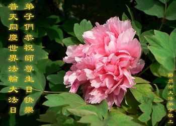 弟子代表无法问候师尊的郑州市大法弟子:恭贺世界法轮大法日,恭祝师尊生日快乐! 弟子愧对师尊的慈悲苦度!这半年以来放松自己的修炼,没有严格要求自己学法修炼,也没做好大法弟子该做的三件事,也出现了很多不正确状态,让师父更操心了!从今后一定下定决心不再重蹈覆辙,抓紧时间实修,做好大法弟子该做的三件事,完成自己的历史使命,圆满随师还。 河南省郑州市大法弟子恭贺世界法轮大法日!恭祝师尊生日快乐!