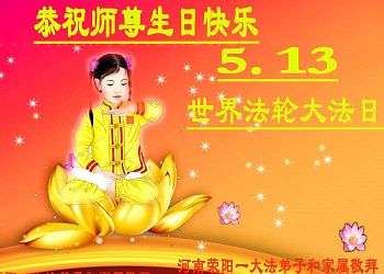 河南郑州大法弟子恭祝师父生日快乐!庆祝世界法轮大法日!