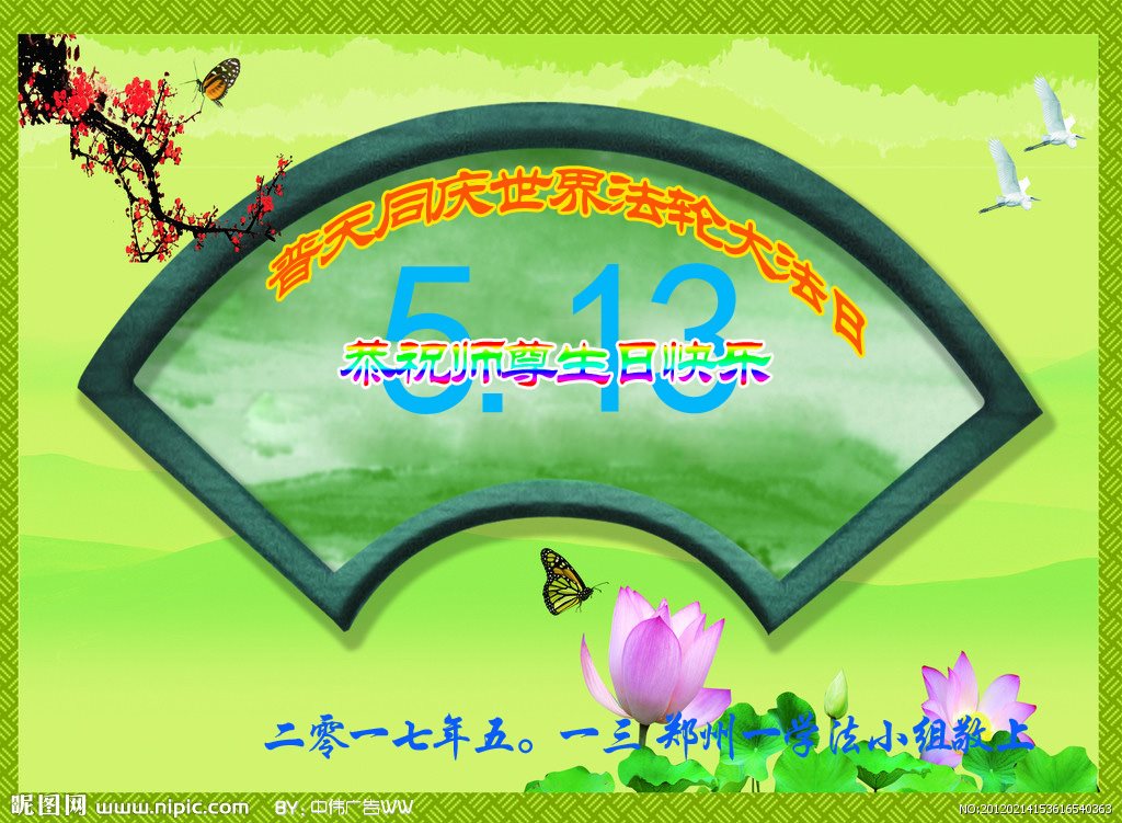 【明慧网二零一七年五月十二日】 河南省郑州市大法弟子恭贺世界法轮大法日!恭祝师尊生日快乐!
