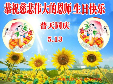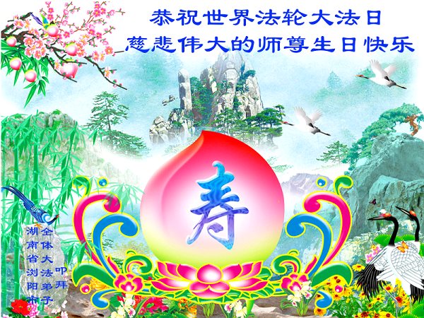 师尊您辛苦了!您为弟子、世人、众生付出的太多太多了。千言万语也表达不了弟子们对师尊深深的思念和无限的感恩!唯有听师尊的话,照师尊讲的做,在正法的最后时期更加精進,抓紧做好三件事,修好自己,把“证实大法救度众生”的神圣使命责任牢记在心。让师尊少一份操劳,多-份欣慰,惟愿师尊笑! 湖南长沙大法弟子恭祝师尊生日快乐!庆祝世界法轮大法日!