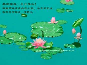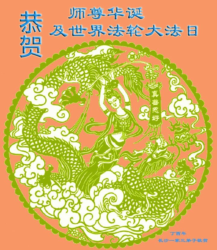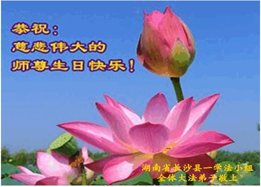 师父好!师父您辛苦了!恭祝师父生日快乐!我们学法小组全体大法弟子叩拜师父!感谢师父的佛恩浩荡! 普天同庆大法日 弟子用心来拜敬 修心内找显神威 争分夺秒多救人 才是法徒份内事 兑现誓约返家园 长沙市大法弟子全家修炼人恭祝师尊华诞!
