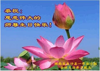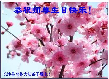 湖南省长沙县全体大法弟子恭祝慈悲伟大的师尊生日快乐!