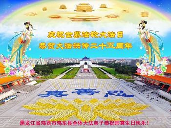 大陆黑龙江鸡西大法弟子恭祝师尊生日快乐!祝贺法轮大法洪传世界!