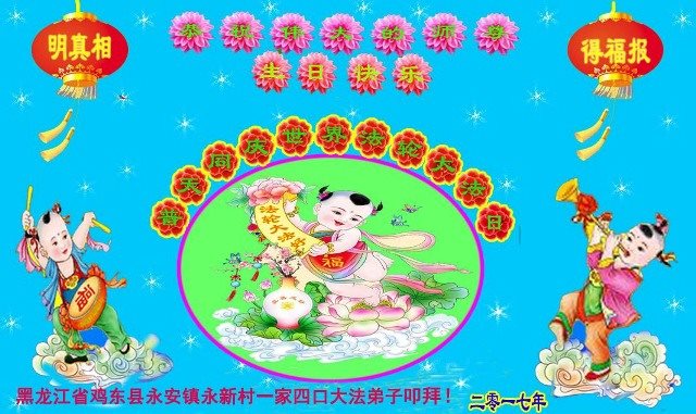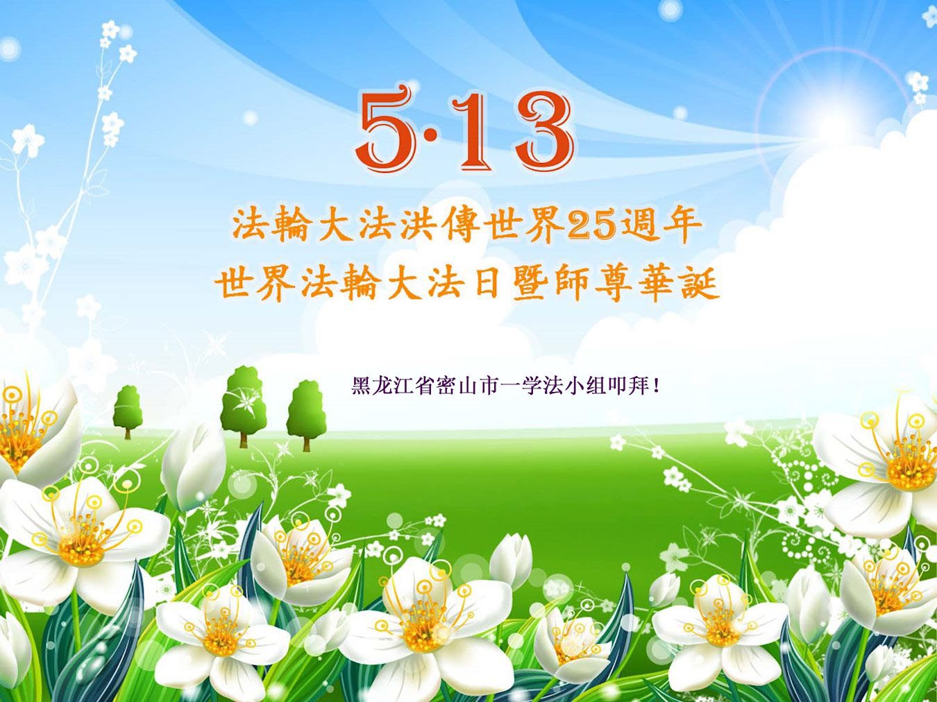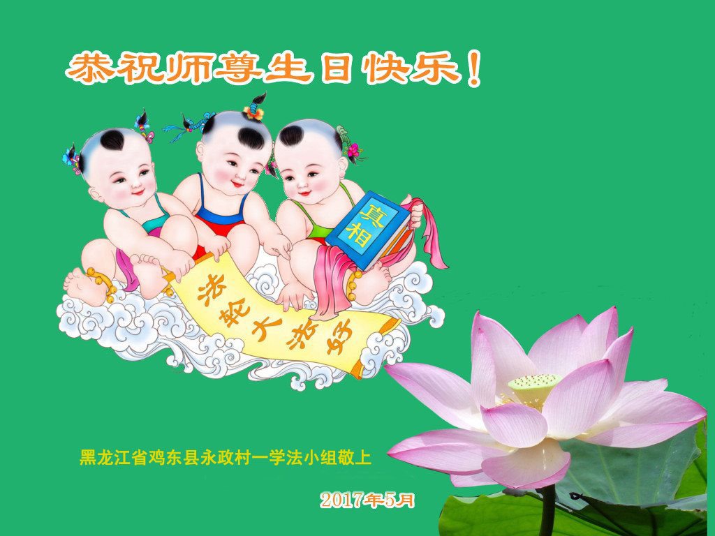 【明慧网二零一七年五月十二日】 黑龙江省鸡西市鸡东县全体大法弟子恭祝师尊生日快乐!