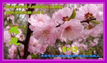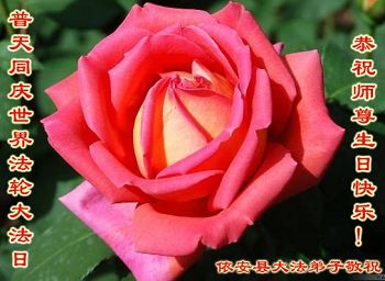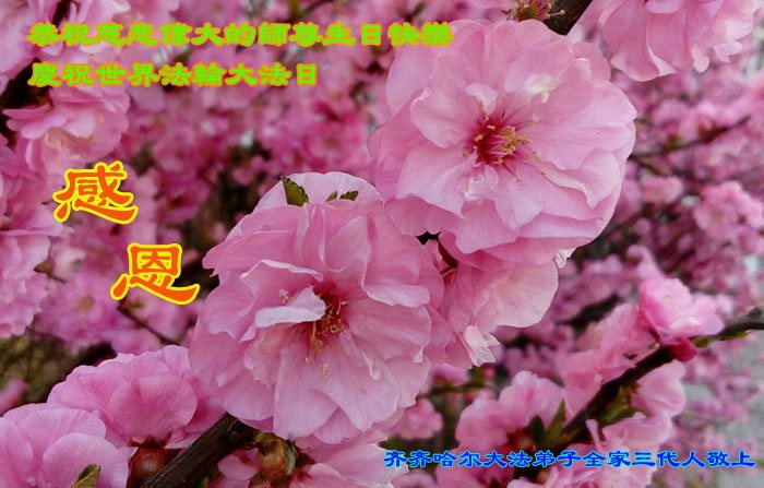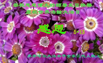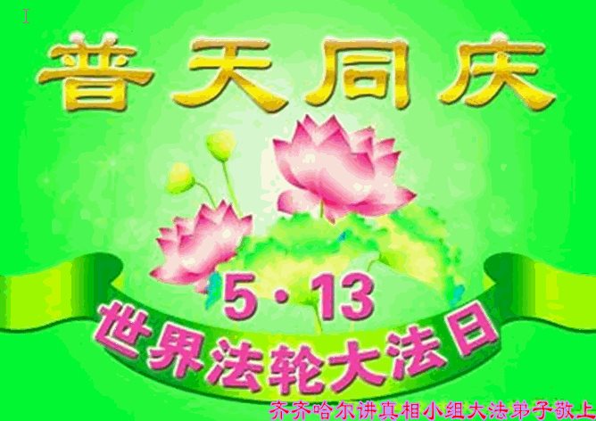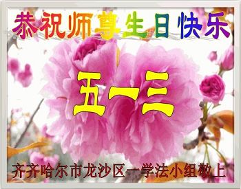 恭祝师尊生日快乐! 普天同庆五·一三世界法轮大法日 齐齐哈尔金融系统大法弟子叩拜 黑龙江省齐齐哈尔--一家大法弟子恭祝师尊生日快乐!