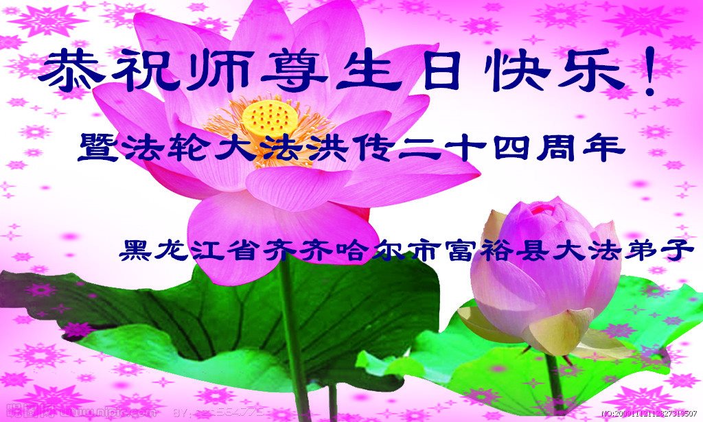 黑龙江齐齐哈尔富裕大法弟子恭祝世界法轮大法日!
