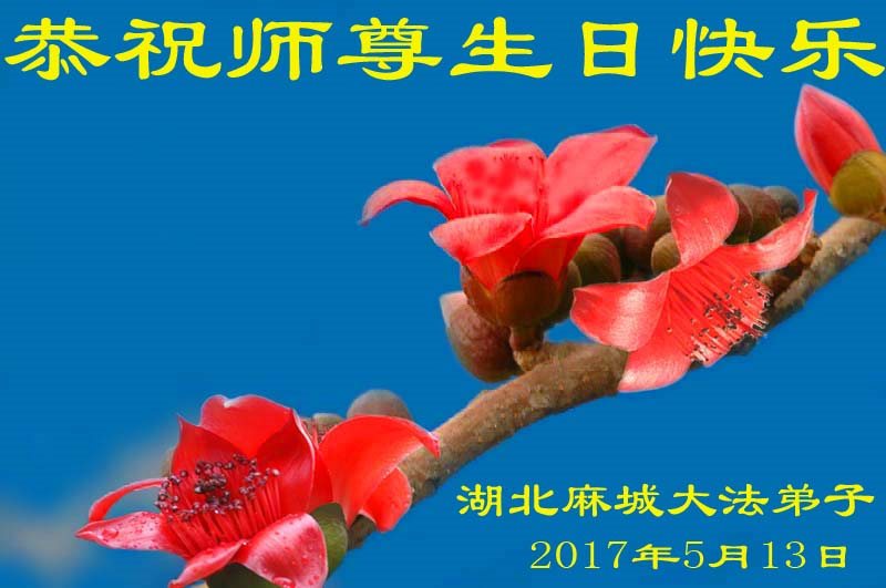 【明慧网二零一七年五月十二日】 湖北省黄冈市麻城市大法弟子恭祝师尊生日快乐!