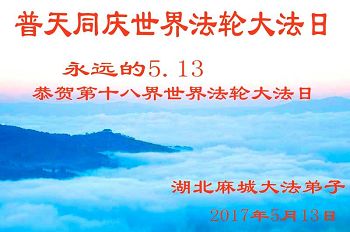 沈阳市两学法小组大法弟子叩拜:恭祝师父生日快乐!—普天同庆5.13世界法轮大法日! 湖北省黄冈市麻城市大法弟子恭贺法轮大法日!