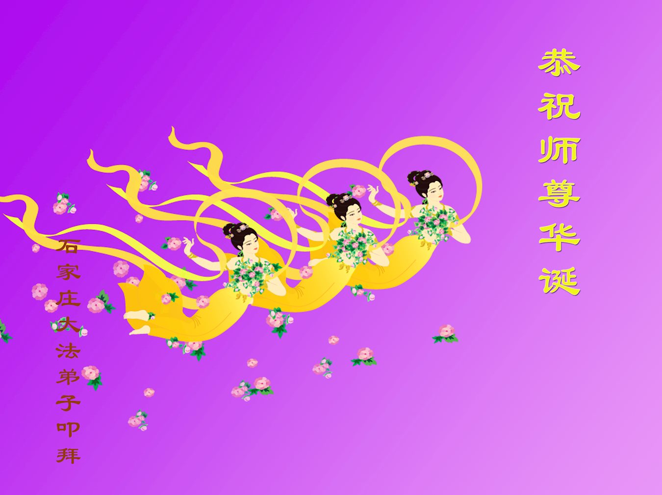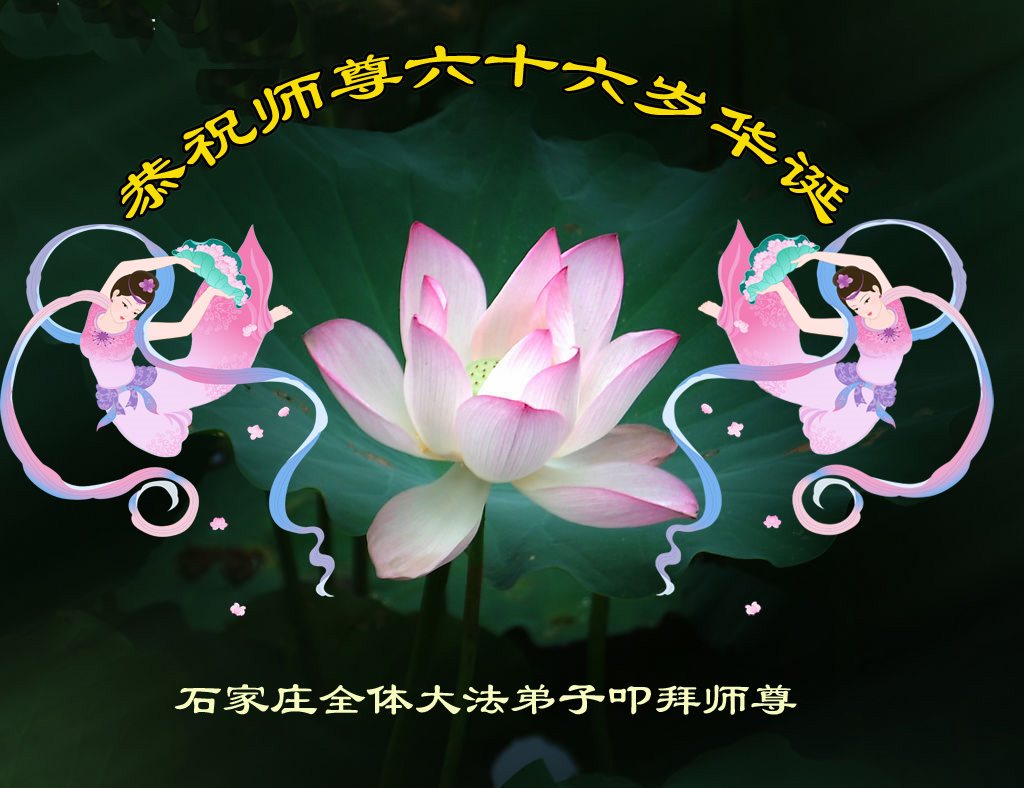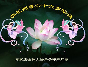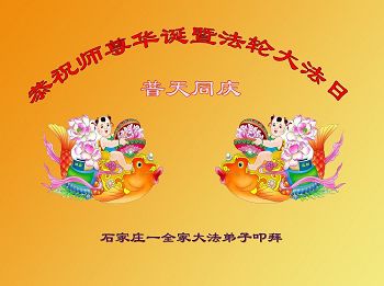 河北省石家庄一全家大法弟子恭贺法轮大法日!