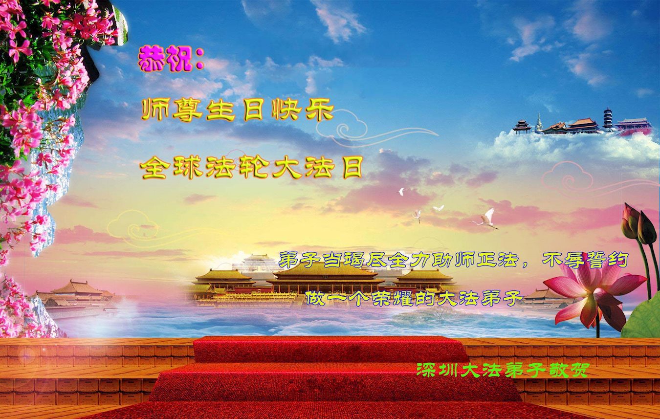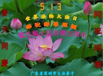 广东省深圳大法弟子敬贺师父生日暨世界法轮大法日!