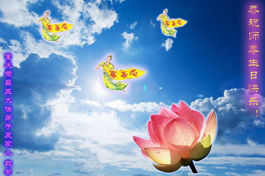 祝慈悲伟大的师父生日快乐! 重庆荣昌区大法弟子及家人恭祝法轮大法日!