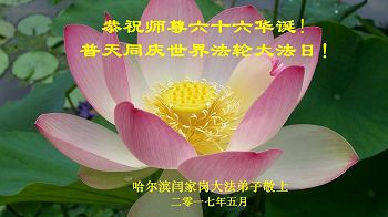 恭祝师尊生日快乐!普天同庆第十八届世界法轮大法日! 感恩慈悲伟大的师尊! 合十 黑龙江省齐市一学法小组同修喜迎2017年5.13世界法轮大法日!
