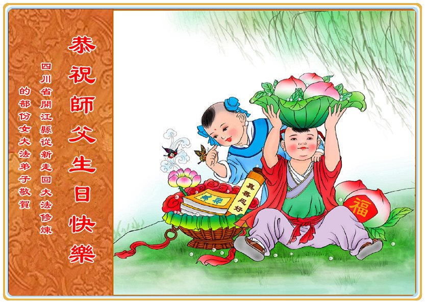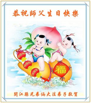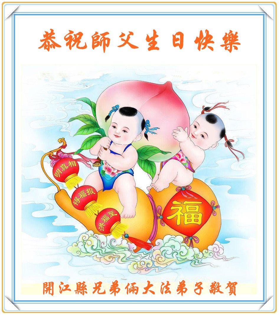 四川省达州市开江县兄弟俩大法弟子恭祝师父生日快乐!