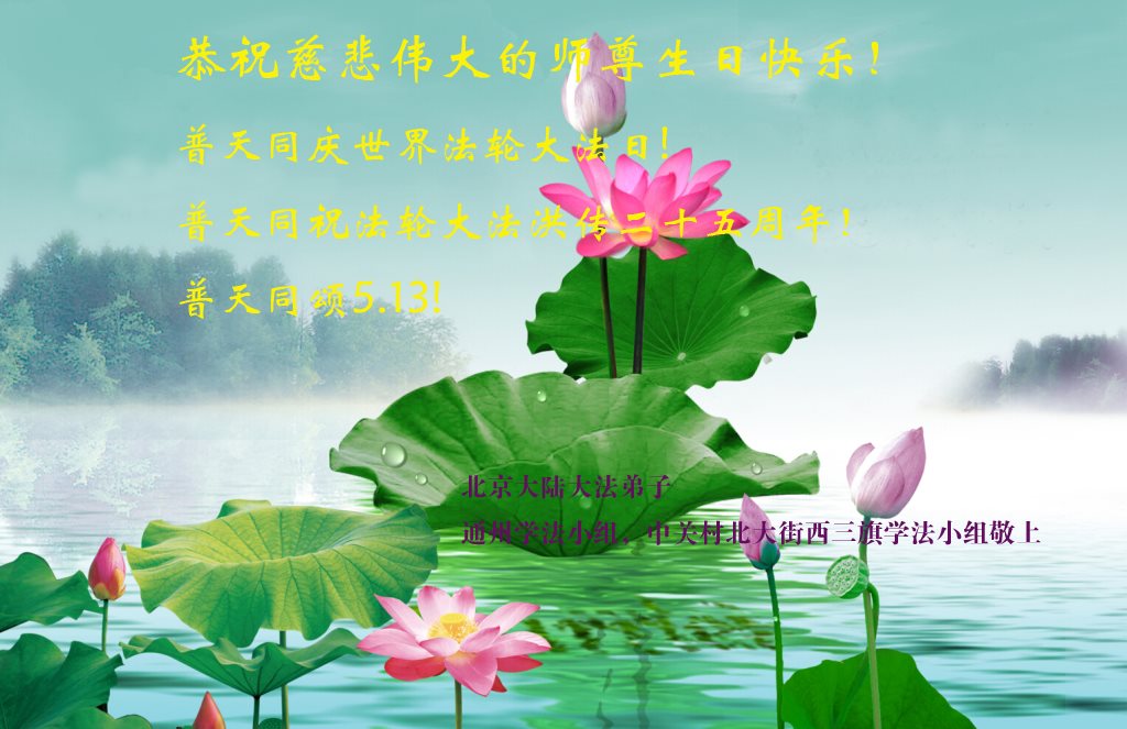 北京通州学法小组、中关村北大街西三旗学法小组恭祝师尊生日快乐!普天同庆世界法轮大法日!