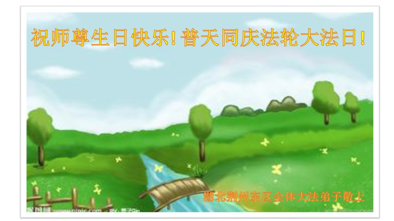听师父的话,做好三件事。 湖北荆州东区大法弟子恭贺世界法轮大法日暨师尊生日快乐!