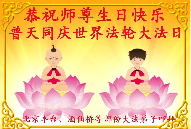 重庆荣昌大法弟子恭祝师尊生日快乐!弟子一定学好法,多救人,不断精進,跟师父回家! 北京丰台、酒仙桥等部份大法弟子恭祝师尊生日快乐!普天同庆世界法轮大法日!