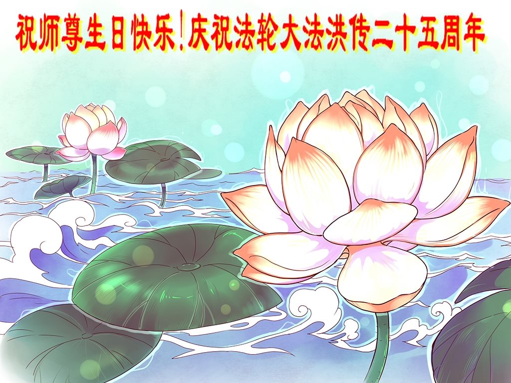 为得大法来世间,世人都知得法难。 抓紧救度迷中人。 做好三件事,回归路通天。 得法为回天上家,千百年来只为这一回。 忙忙碌碌人世间,苦苦挣扎难解脱。 金光乍显迷雾散,璨阳高照法开传。 放下执着心清净,法船扬帆已备航。 回归路上莫松懈,离家只隔一步远。 优昙婆罗花,三千年一开。 轮回流转,法王为救世下凡。 三十三重天显灵,漫天神佛现真形,只为祝圣王寿。 仙女霓裳,婀娜多姿,同舞圣王威德。 千百年等待,只为今朝得大法。 人生如梦转眼即逝,唯大法永恒。 破迷航,心雾散。 法船来,众神引。 圆满随师还。 轮回辗转千百年, 浩荡洪恩正法传。 修心去执添正念, 圆满随师回家园。 佳木斯四人小弟子学法组恭贺法轮大法日同祝师尊生日快乐! 重庆荣昌大法弟子恭贺法轮大法日!