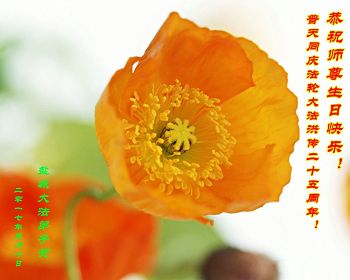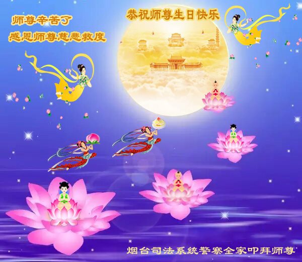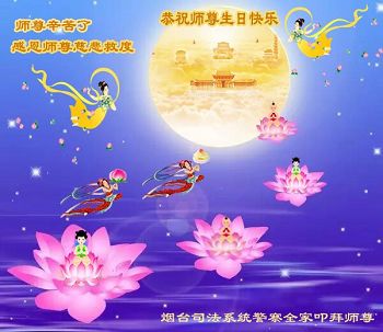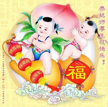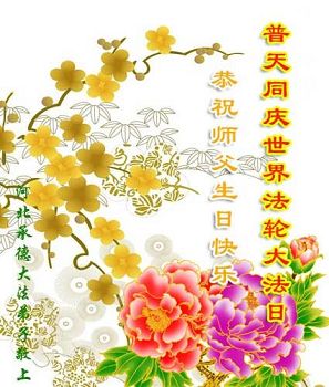 恭贺世界法轮大法日! 恭祝师尊生日快乐! 师父您辛苦了! 回想起师尊传法的日日夜夜,难以想象的辛苦与艰难,您付出的心血无量无计,看护着我们。您承受着那前所未有的巨难,救度苍穹在坏灭的瞬间。大法的威严已呈现在世间,弟子谢师恩,永永远远!我一定坚修大法永随师! 弟子拜上 天津市一大法弟子及全家人恭祝师尊生日快乐!