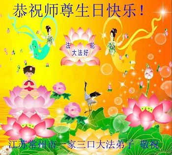 恭祝师尊生日快乐!恭贺法轮大法日! 江苏常州市大法弟子一家三人恭祝慈悲伟大的师尊生日快乐!