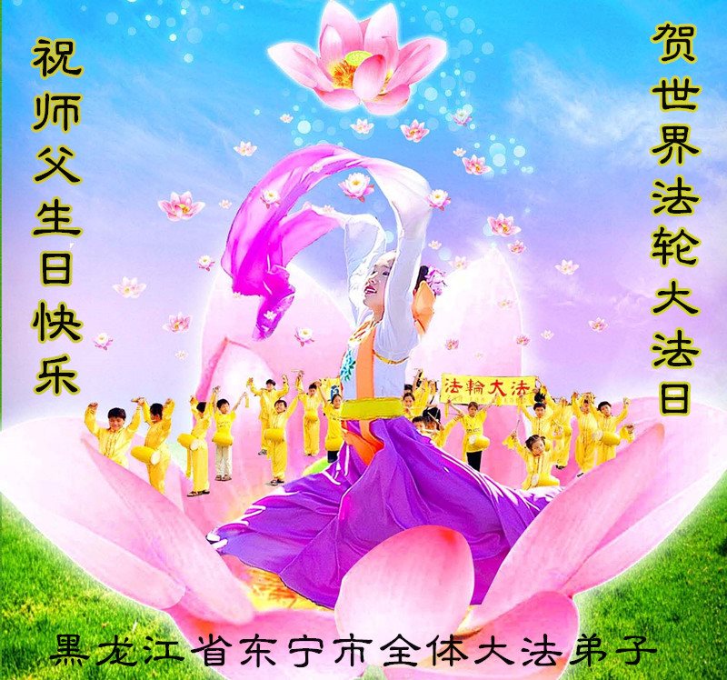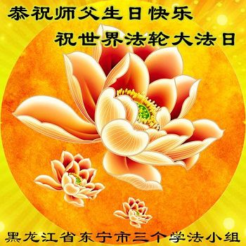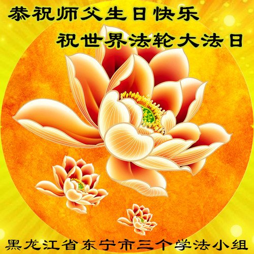黑龙江省东宁市三个学法小组恭贺世界法轮大法日祝师父生日快乐!