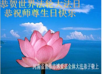 我们是黑龙江省东宁市三个学法小组的大法弟子,向师父问好,恭祝师尊六十六华诞,祝“五。一三”世界法轮大法日。 河南省焦作市博爱县全体大法弟子恭贺法轮大法日!