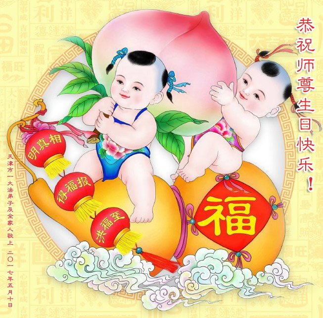山东省潍坊市寿光市台头镇全体大法弟子 敬上 2017年05月11日 河北石家庄大法弟子一家三口恭祝师尊生日快乐!恭贺5.13世界法轮大法日!