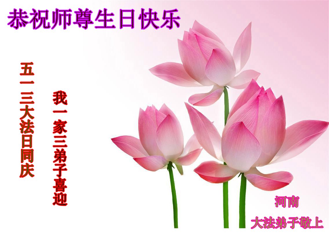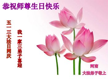 河南一家三位大法弟子恭祝师尊生日快乐!