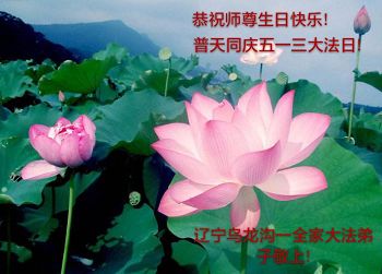 辽宁抚顺、山东大法弟子恭祝师尊生日快乐!