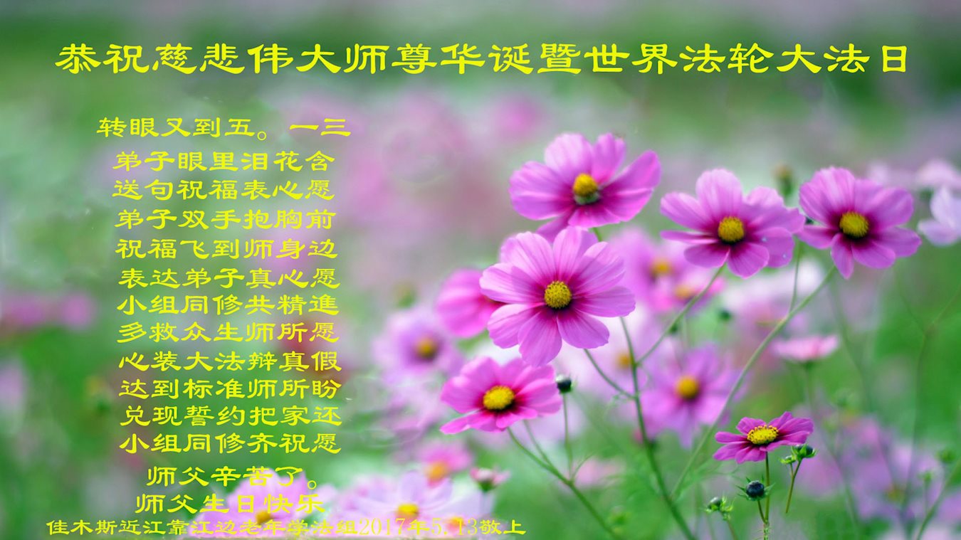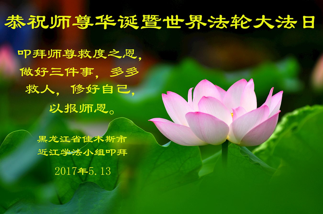 黑龙江省佳木斯大法弟子恭祝慈悲伟大的师尊生日快乐!