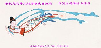 世界法轮大法日来临之际,恭祝伟大的师父生日快乐!弟子万分想念您!我们新老学员一定要共同精進,做好三件事,不辜负师父的慈悲救度! 北京亦庄大法弟子跪拜师尊。 河北省保定大法弟子恭祝师尊生日快乐!