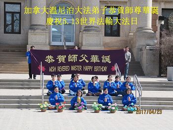 加拿大温尼伯大法弟子恭贺师尊华诞!庆祝5.13世界法轮大法日!