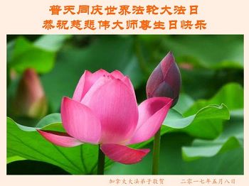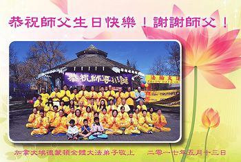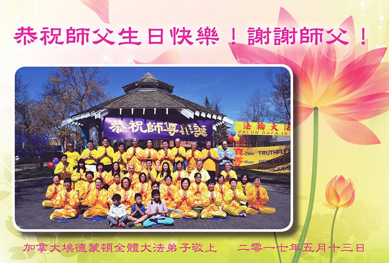 【明慧网二零一七年五月十二日】 加拿大埃德蒙顿全体大法弟子恭祝师尊生日快乐!恭贺世界法轮大法日!