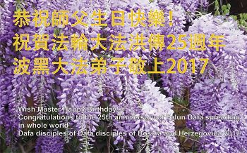 波黑大法弟子恭祝师父生日快乐!祝贺法轮大法洪传二十五周年!