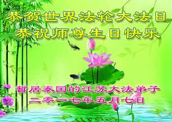暂居泰国的江苏大法弟子恭贺世界法轮大法日!恭祝师尊生日快乐! 泰国全体大法弟子恭贺世界法轮大法日