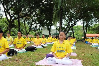 泰国曼谷仑皮尼公园炼功点学法小组恭贺世界法轮大法日!恭祝恩师华诞!
