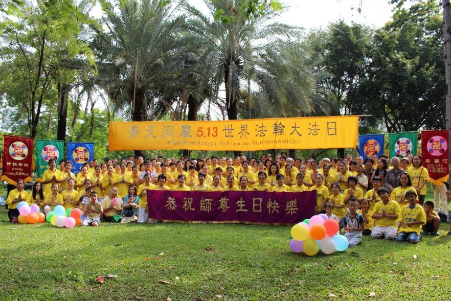 泰国法轮功学员庆祝世界法轮大法日!恭贺师尊华诞!