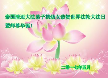 泰国清迈大法弟子携幼女恭贺世界法轮大法日暨师尊华诞!