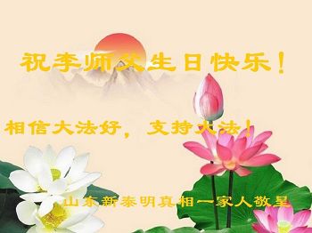 山东青岛明白真相的世人恭祝慈悲伟大的李洪志大师生日快乐!恭贺世界法轮大法日!
