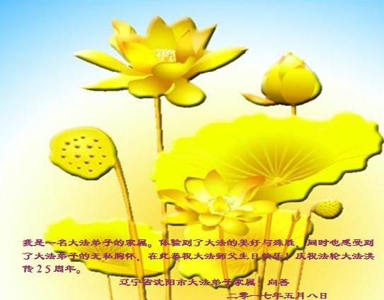 辽宁沈阳市大法弟子家属祝愿大法师父生日快乐!