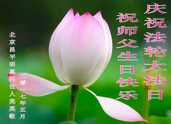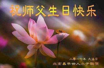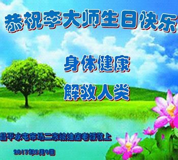 北京昌平一明真相的世人恭贺法轮大法师父生日快乐!