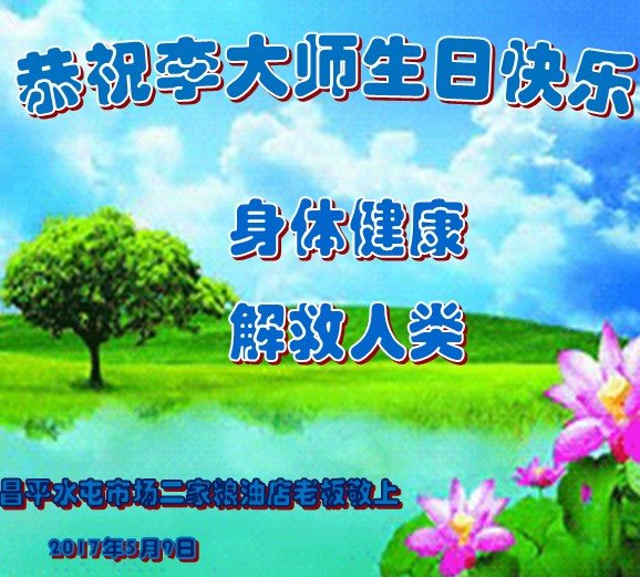 北京昌平水屯市场二家粮油店老板恭祝李大师生日快乐!