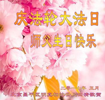 北京昌平一明真相的世人恭贺法轮大法日!祝师父生日快乐!