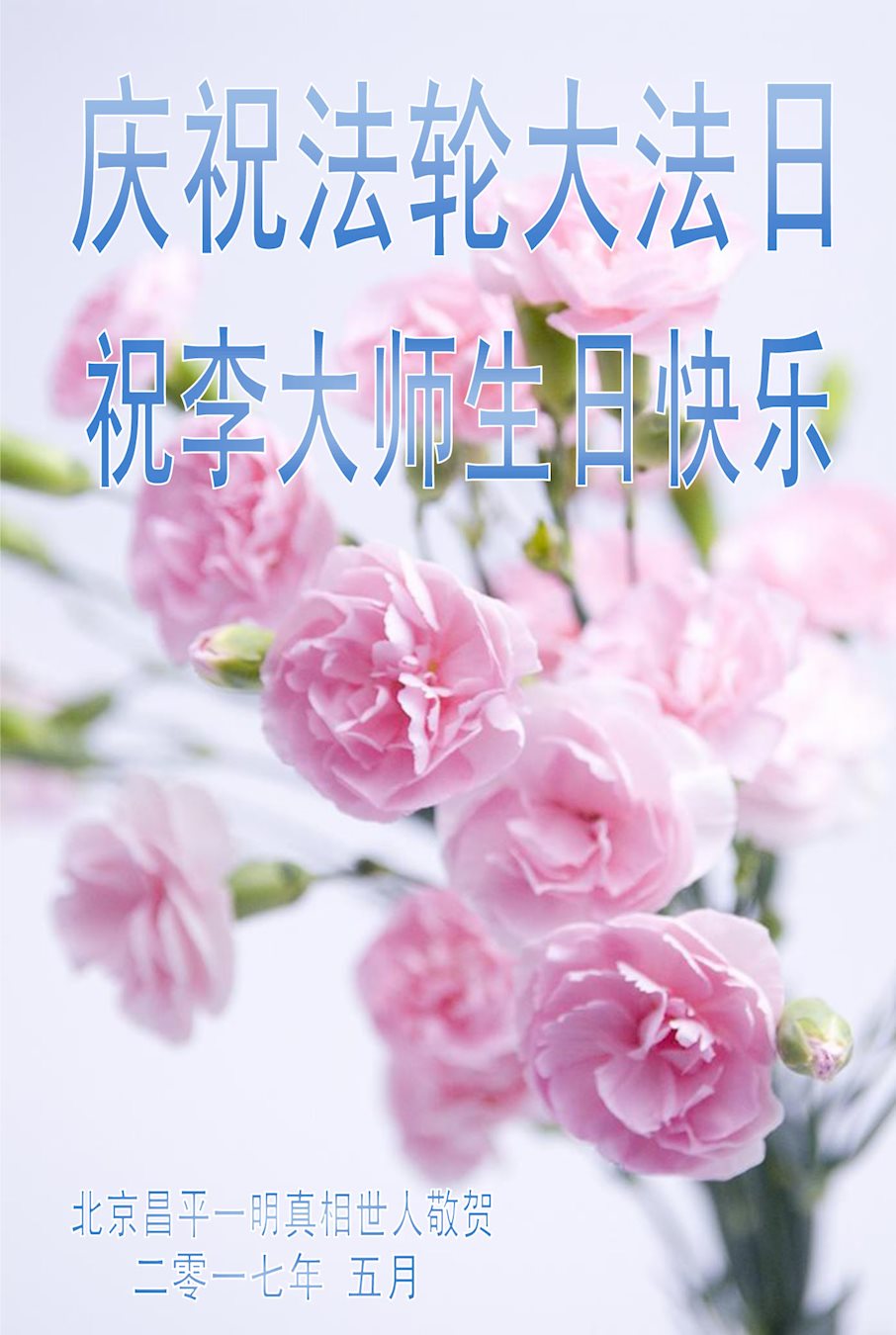 北京昌平一明真相的世人恭祝李洪志师父生日快乐!