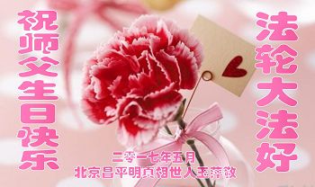祝李洪志大师生日快乐!法轮大法好!真善忍好!祝李洪志大师早日回国! 北京市昌平区明白真相的父女二人恭贺法轮大法日!
