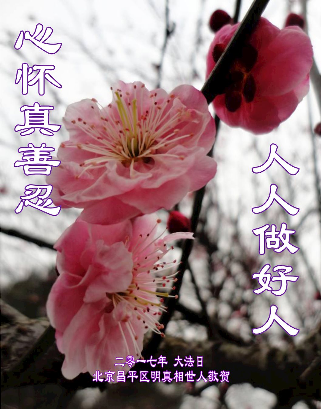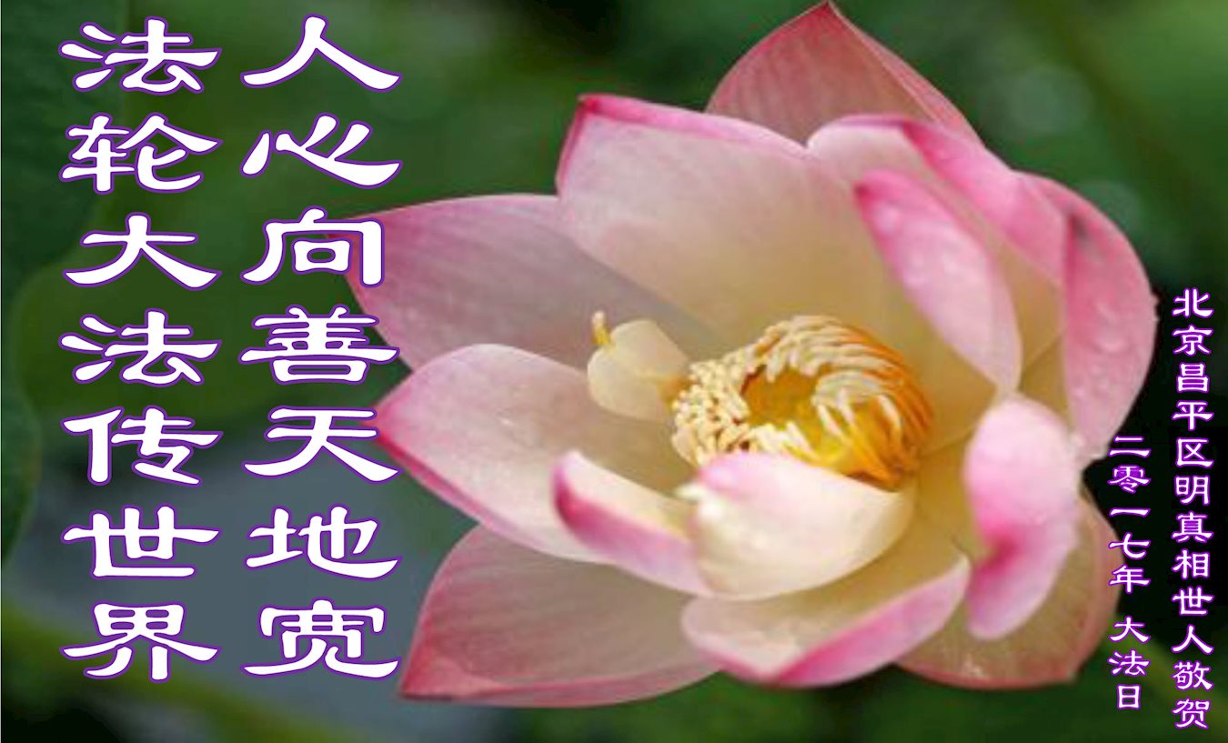 我们盼望李洪志大师早日返回中国大陆。 北京市昌平区三位觉醒世人恭贺法轮大法日!