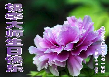祝李大师生日快乐!身体健康,福如东海,寿比南山,法轮大法好!真、善、忍好! 北京怀柔区一大法弟子亲属祝大法师父生日快乐!法轮大法好!真善忍好!