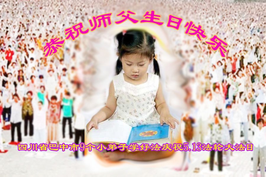 我是大法小弟子,我祝师父生日快乐!我会和爷爷、奶奶一起学法炼功,跟师父早日回家。 四川省巴中市九个大法小弟子学好法庆祝5.13法轮大法日!恭祝师尊生日快乐!
