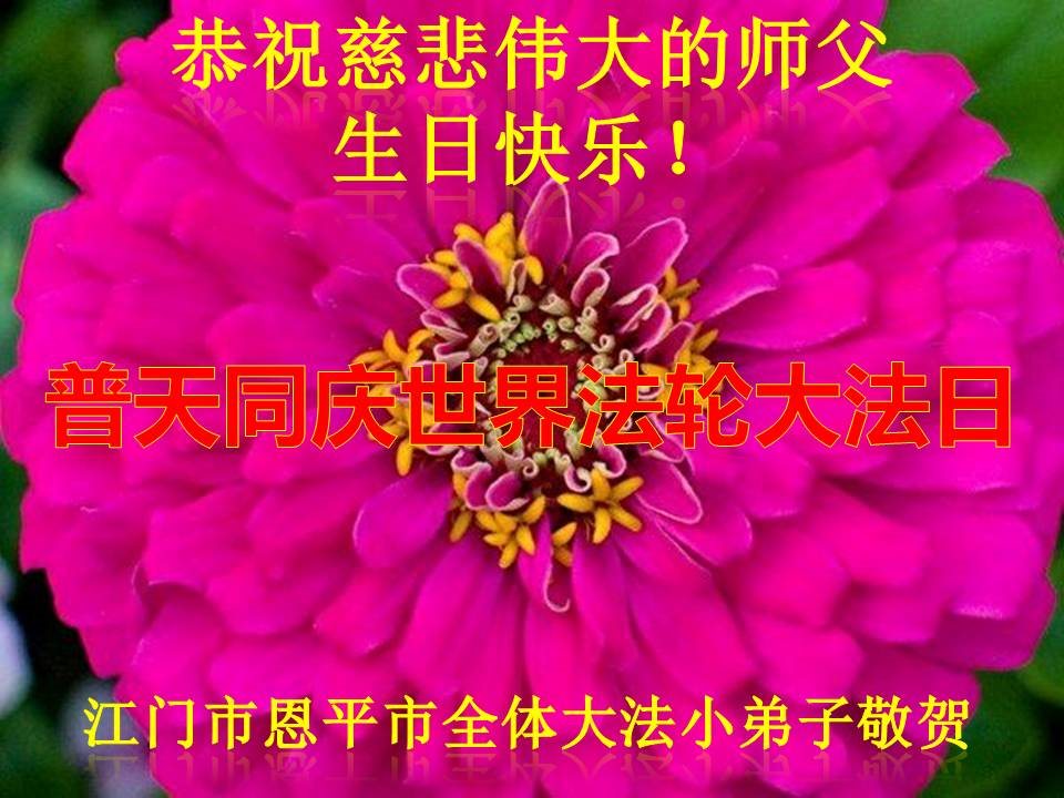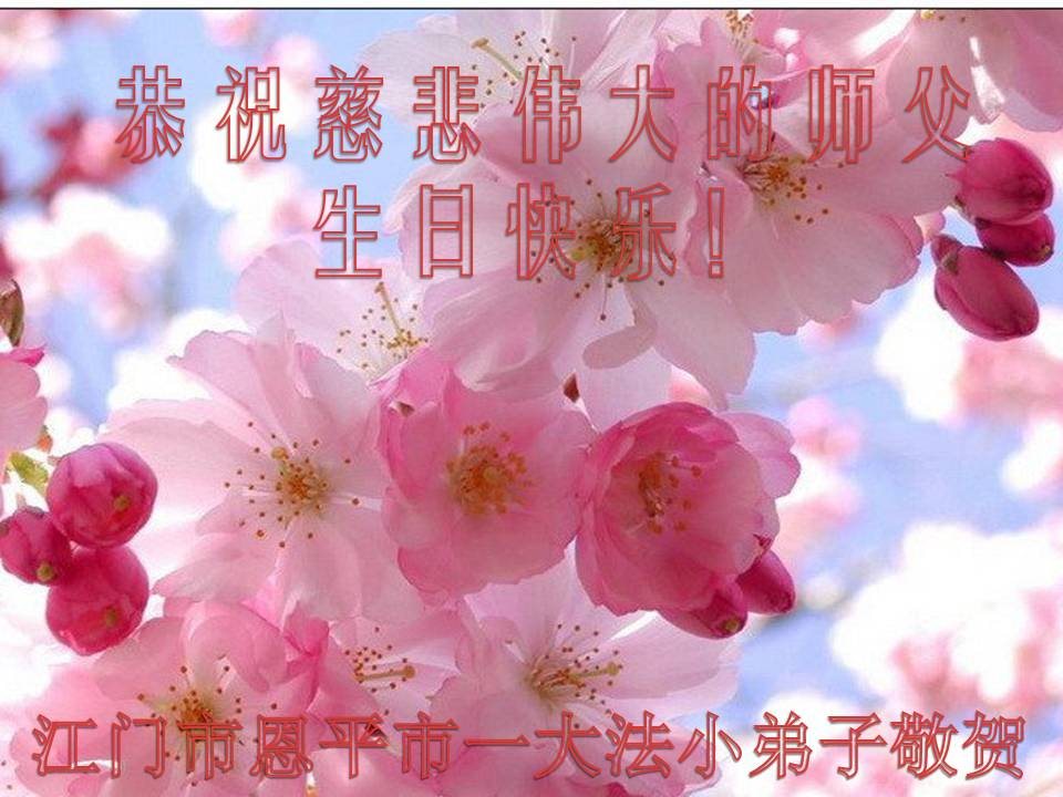 恭祝师父生日快乐!普天同庆世界法轮大法日! 河北小弟子跪拜 广东省江门市恩平市全体大法小弟子恭贺法轮大法日!